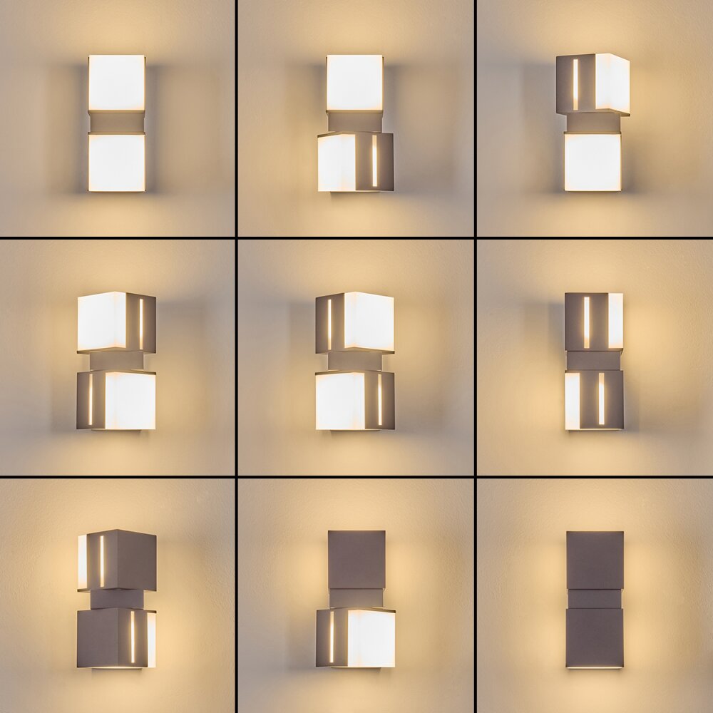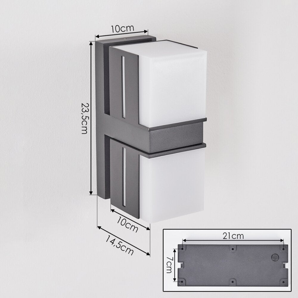 Mit zwei Lichtquellen, einem geometrisch gestapelten Design und IP54-Schutz sorgt sie für eine vielschichtige, stimmungsvolle Beleuchtung von Terrassen, Gärten oder Außenwänden. Das robuste anthrazitfarbene Finish und die wetterfeste Ausführung machen sie zur stilvollen und funktionalen Wahl, um Ihren Außenbereich mit modernem Charme und zuverlässigem, atmosphärischem Licht zu bereichern.