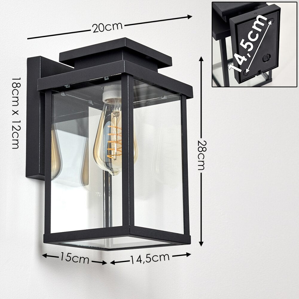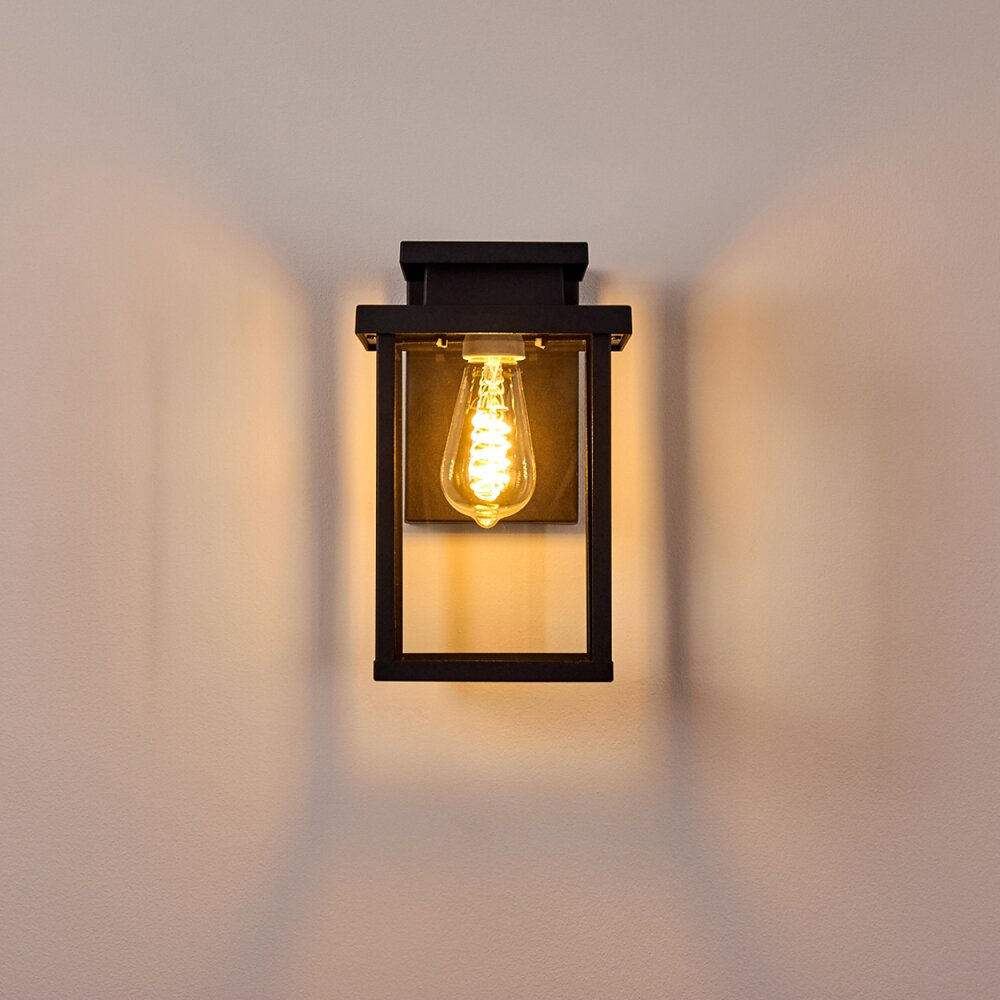 Verleihen Sie Ihren Außenbereichen zeitlosen Charme mit dieser schwarzen Außenwandleuchte. Mit einer Edison-Glühbirne, einem glaseingefassten Käfigdesign und IP44-Schutz sorgt sie für warmes, von der Vintage-Ästhetik inspiriertes Licht auf Terrassen, in Gärten oder an Außenwänden. Das langlebige schwarze Finish und die wetterfeste Konstruktion machen sie zu einer stilvollen und funktionalen Wahl, um Ihren Außenbereichen einen Hauch von Retro-Eleganz und zuverlässige Beleuchtung zu verleihen.