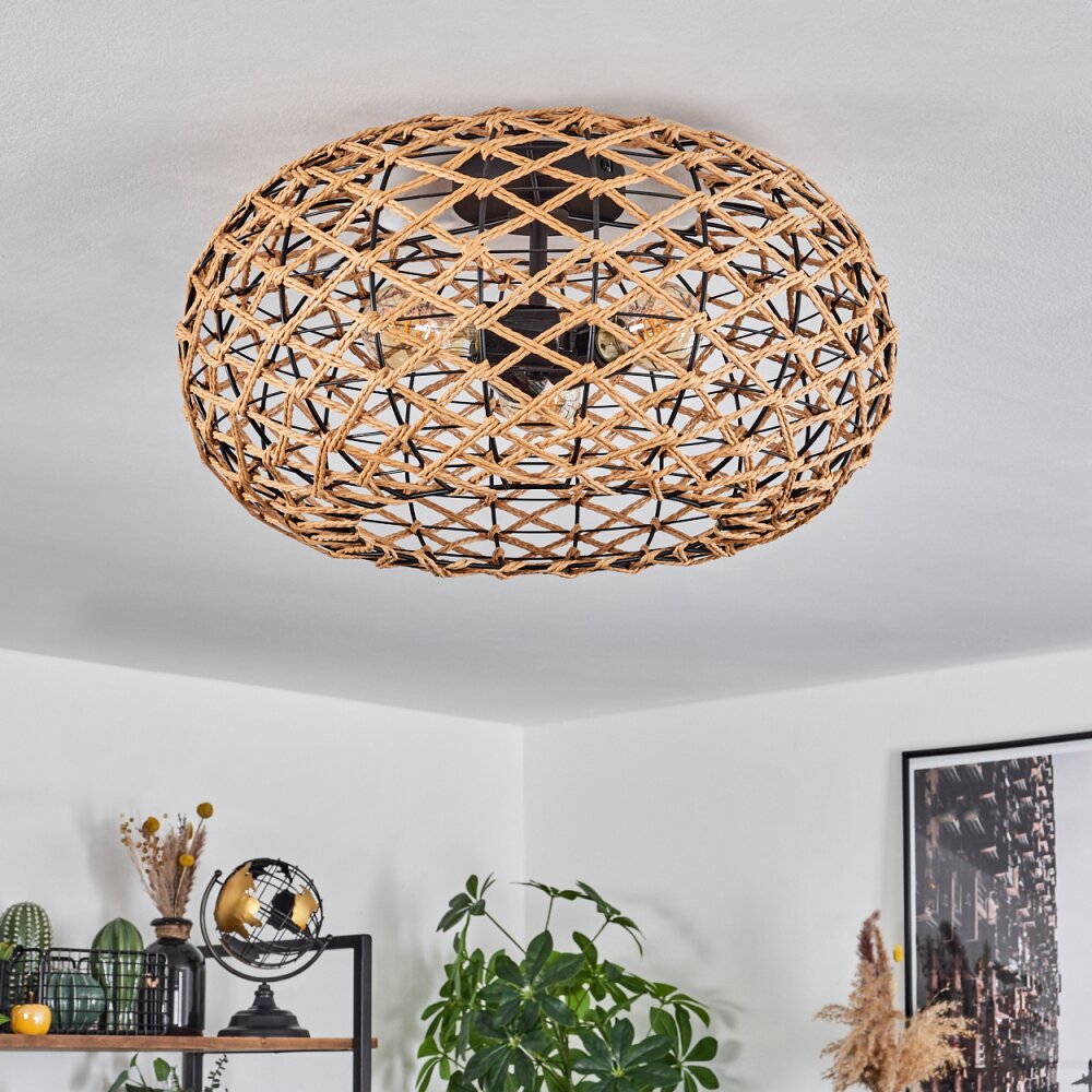Inspired by bohemian geometric design, this ceiling light features an intricately woven bamboo sphere structure. Its multi-light source configuration casts dynamic starburst shadows, blending organic bamboo texture with bold geometric artistry. The airy, spherical form emits warm, layered illumination, making it a captivating focal point for living rooms, bedrooms, and spaces embracing boho-geometric vibes.