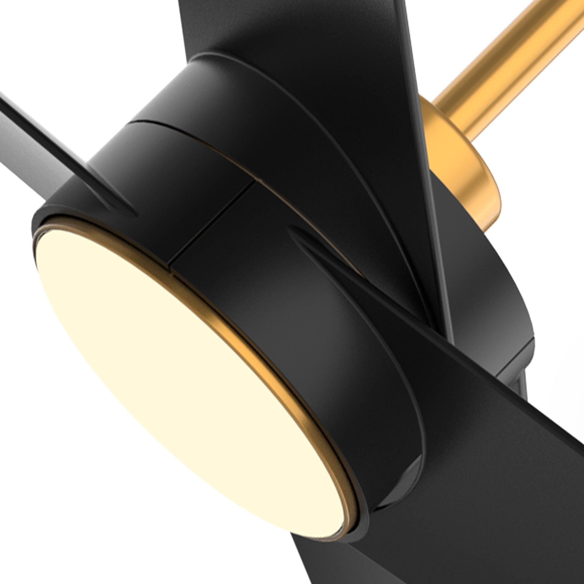 The Parvez LED 60-Inch Gold Fan adds a modern, industrial feel to your decor. The propeller-inspired four-blade design ensures optimal air circulation while enhancing visual appeal. The golden fan body and black ABS fan blades are combined to provide an output of 1500 lumens and a color temperature of 3000/6500K, creating a pleasant atmosphere. With its unique design, this ceiling fan complements every style of décor.