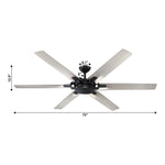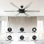 The Madhya 70" Industrial Style Black Fan embodies sleek modernity with its minimalist design and DC motor. Its six silver blades not only add an unique aesthetic appeal but also ensure exceptional airflow for a carefree experience. The fan comes complete with a handheld remote control featuring six speeds, making it versatile for use in any season. Designed for dry indoor environments, this fan is a perfect blend of style and functionality.