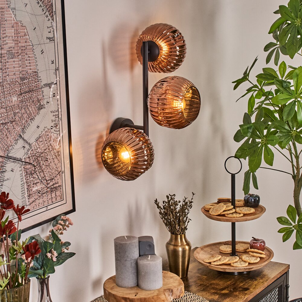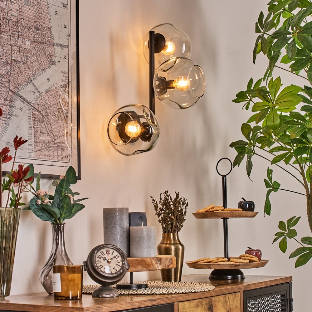 Moderne schwarze Remaisnil-Wandleuchte mit zwei Glaskugeln und Rauchglas für Wohnzimmer und Schlafzimmer