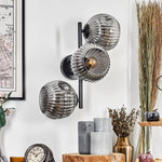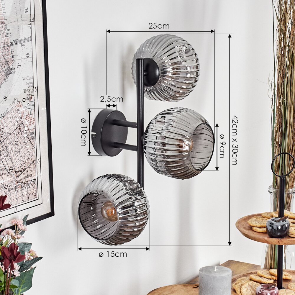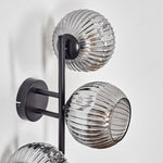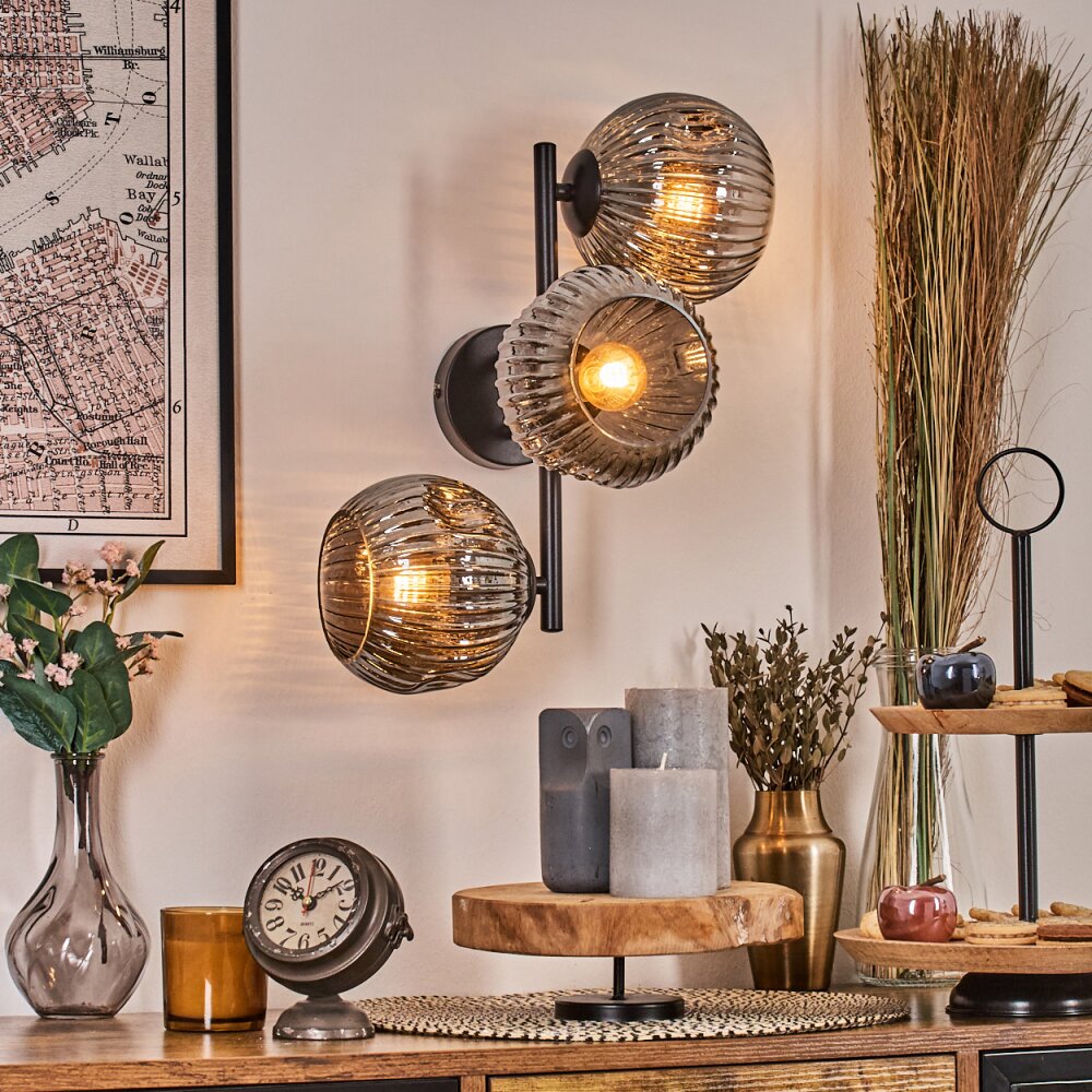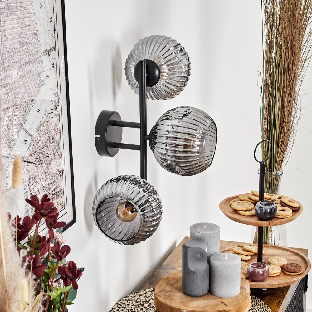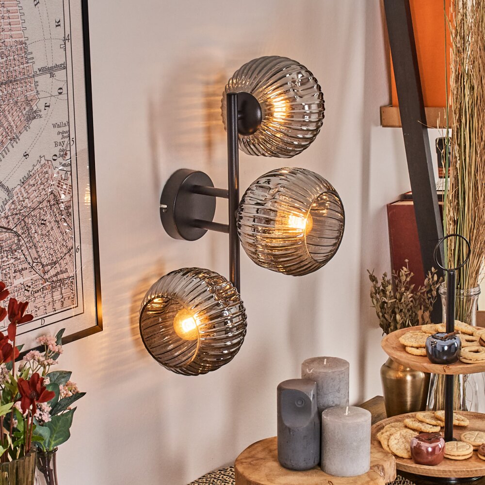 Moderne Wandlampen mit geripptem Rauchglas-Globus und schwarzem Metallrahmen für Wohnzimmer und Schlafzimmer
