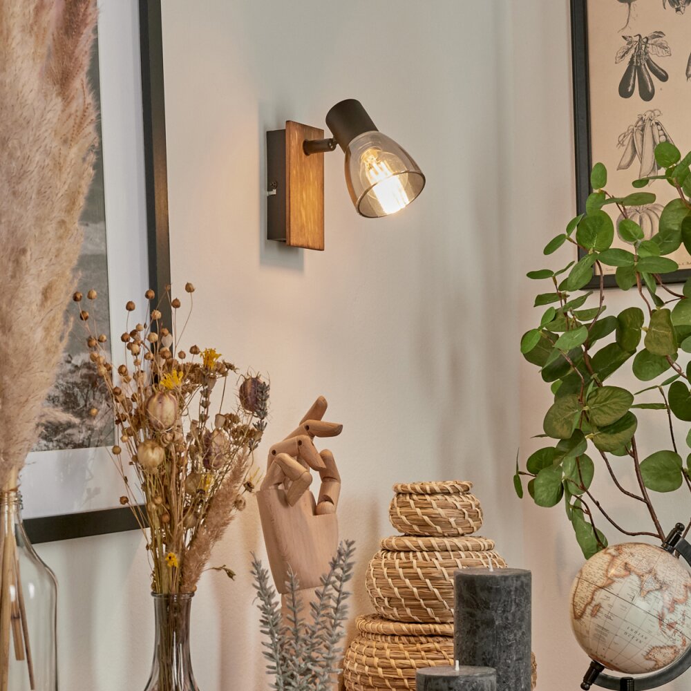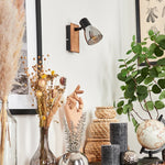 Skandinavische rustikale Wandspotleuchte aus Holz und Metall für Wohnzimmer und Schlafzimmer