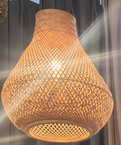 Birnenförmige Pendelleuchte aus Rattan – Diamantgeflecht-Design für warme Boho-Innenräume