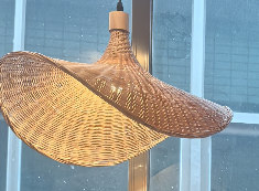 Diese boho Rattan-Pendelleuchte besticht durch ihre skulpturale, ausgestellte Silhouette, gefertigt aus handgeflochtenem, natürlichem Rattan für eine strukturierte, organische Optik. Ihr einzigartiges, offen geflochtenes Design streut warmes Licht und wirft weiche, fließende Schatten, wodurch sie Wohnräumen, Essbereichen oder Eingangsbereichen eine künstlerische, von der Natur inspirierte Note verleiht.