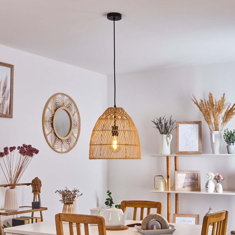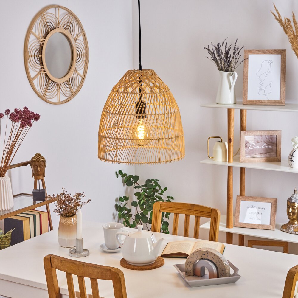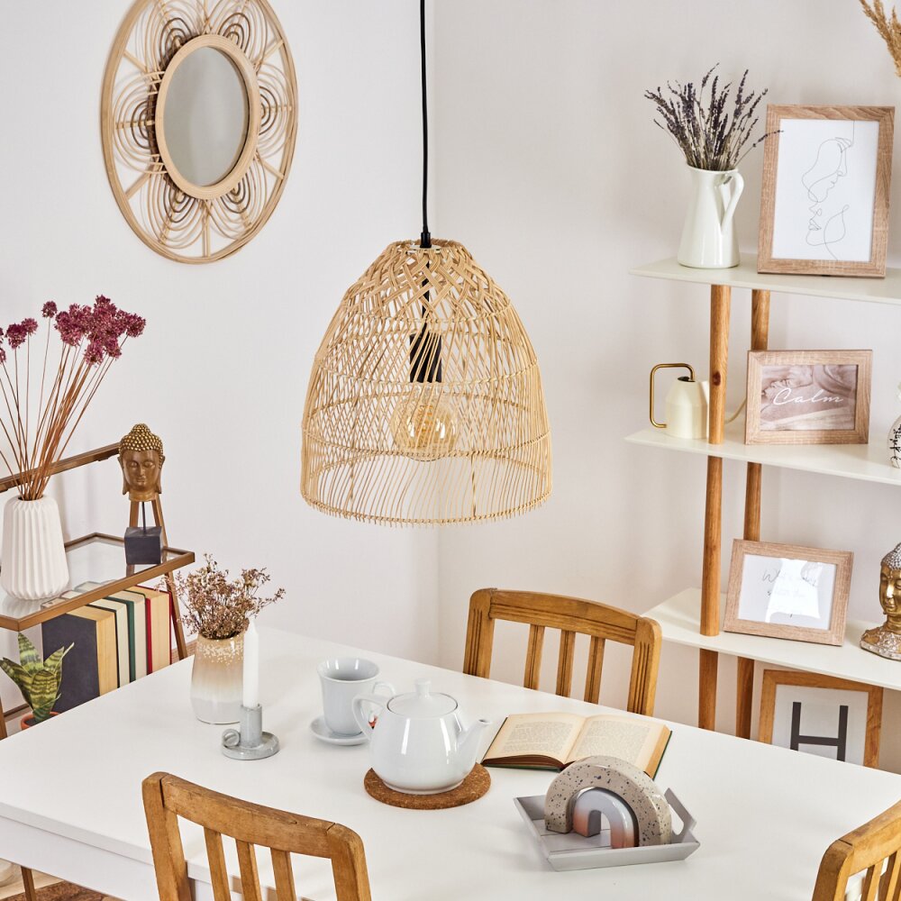 Das warme Leuchten schafft eine gemütliche, einladende Atmosphäre und verbindet nachhaltige Rattan-Handwerkskunst mit Boho-Chic-Flair. Perfekt, um einen entspannten, naturinspirierten Blickfang in Esszimmern, Wohnbereichen oder Küchen zu setzen – ein ideales Akzentstück für Räume, die einen organischen, eklektischen Stil mit warmer, stimmungsvoller Beleuchtung anstreben.
