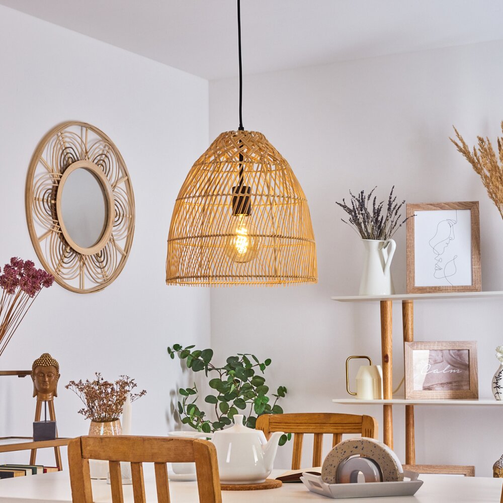Boho Rattan Geflochtene Glockenförmige Pendelleuchte für Esszimmer und Wohnbereich