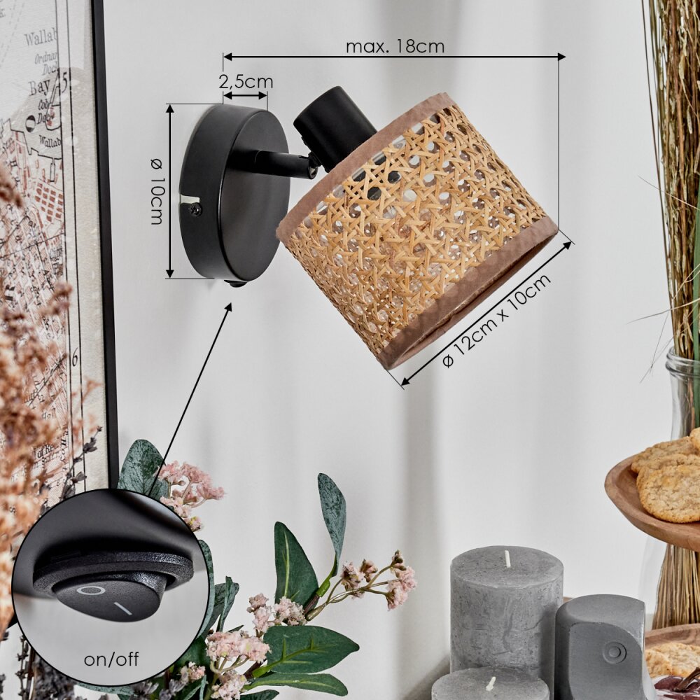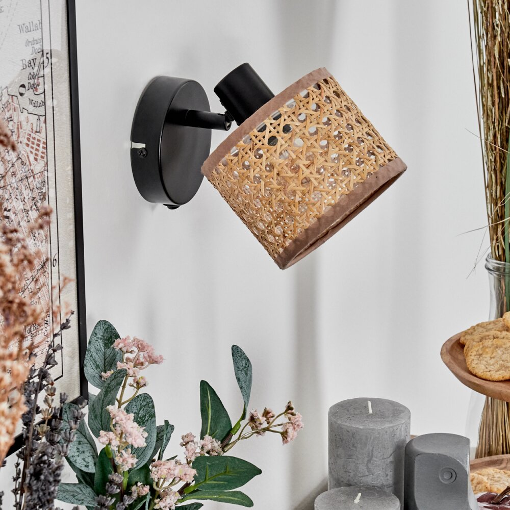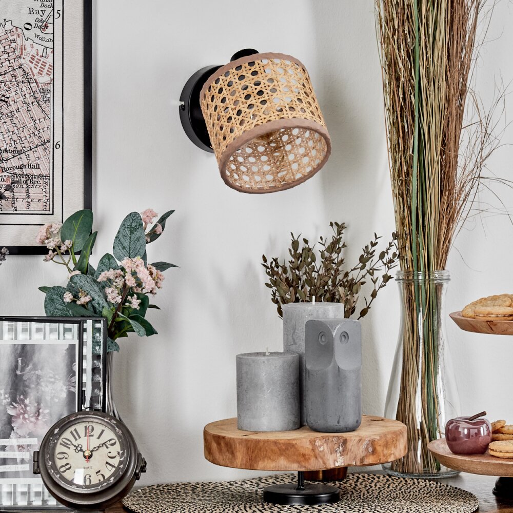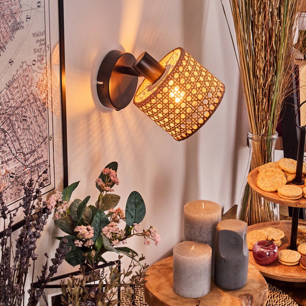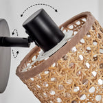 Boho Rattan Geflochtene Wandleuchte mit Verstellbarem Kopf für Wohnzimmer und Schlafzimmer