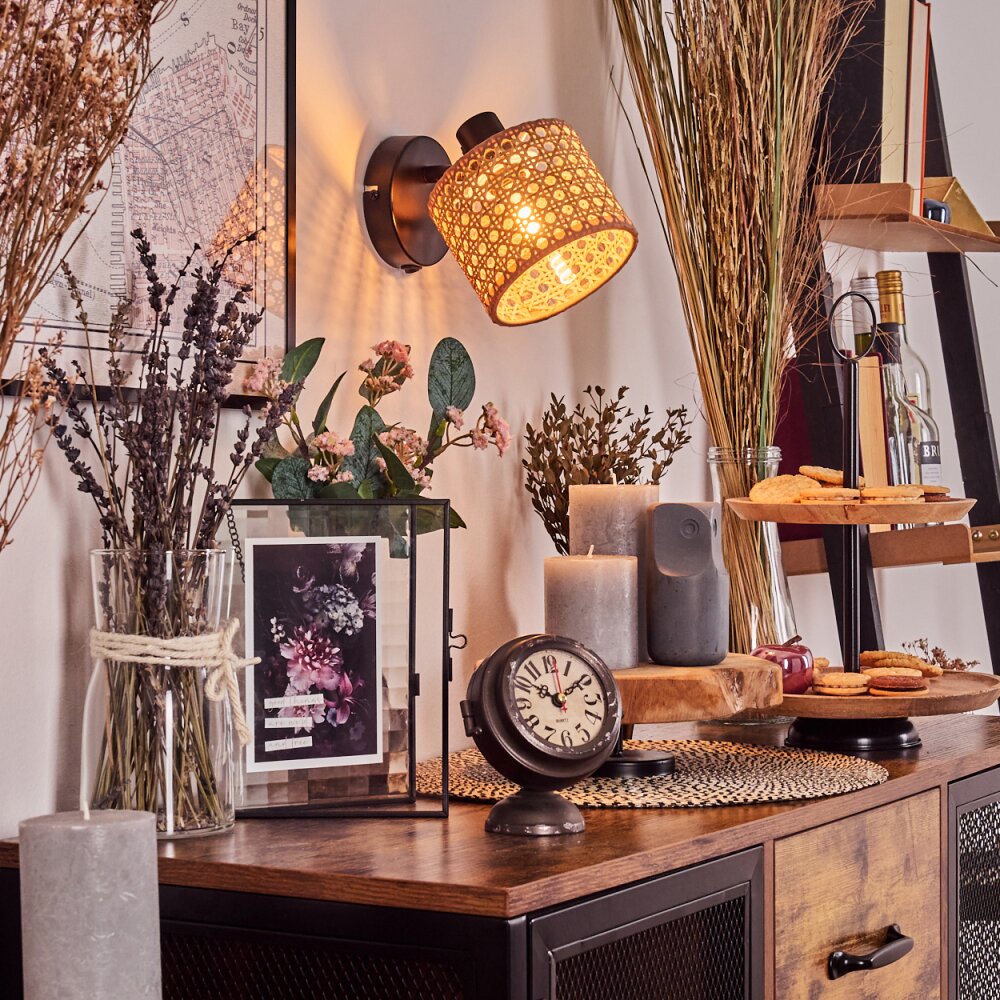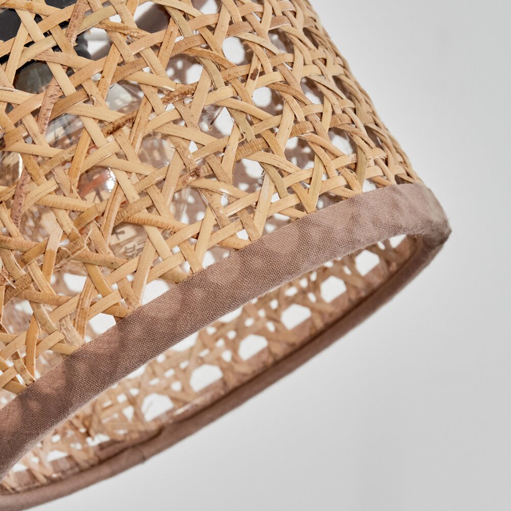 Das warme Leuchten erzeugt eine gemusterte, gemütliche Atmosphäre und verbindet natürliche Rattan-Handwerkskunst mit moderner Funktionalität. Perfekt, um Wohnzimmern und Schlafzimmern einen entspannten, von der Natur inspirierten Touch zu verleihen – ein markantes Highlight für Räume, die einen Boho-Chic-Look mit einem Hauch von Vintage-Charme anstreben.