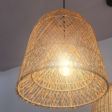 Diese boho-inspirierte Deckenleuchte aus Rattan besticht durch ihre glockenförmige Silhouette mit einem kunstvoll handgeflochtenen Diamantgitter-Design, gefertigt aus natürlichem Rattan für eine strukturierte, organische Ästhetik. Beim Einschalten streut ihre offene Flechtstruktur ein weiches, warmes Licht und wirft zarte geometrische Schatten, was eine gemütliche, einladende Atmosphäre schafft – ideal für Wohnzimmer, Essbereiche oder Schlafzimmer-Ecken.