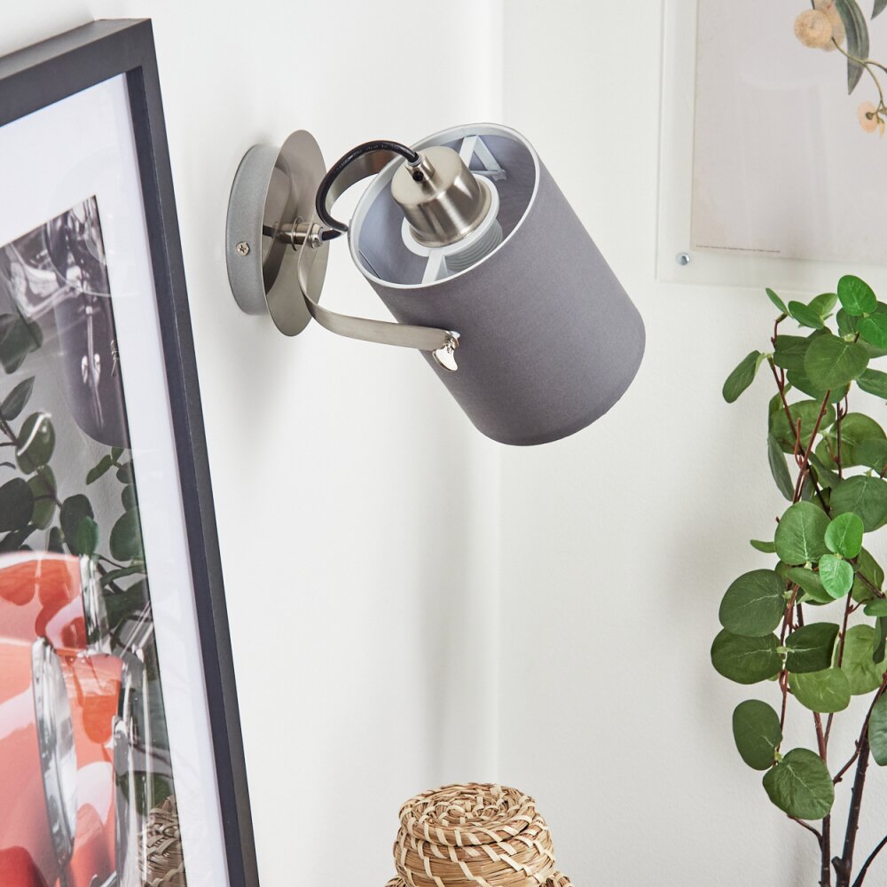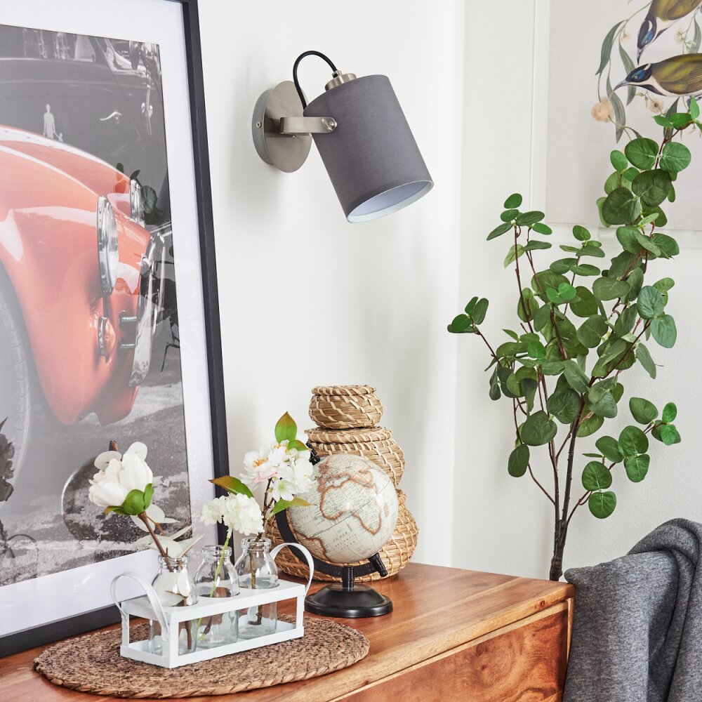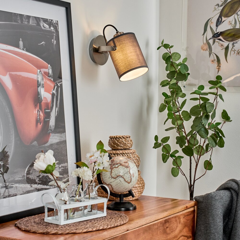 Moderne Wandleuchte mit Stoffschirm, mattnickel- und schwarzen Akzenten für Wohnzimmer und Schlafzimmer