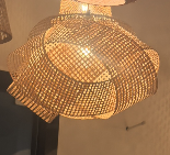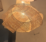 Diese Deckenleuchte präsentiert eine skulpturale, organische Silhouette, gefertigt aus handgeflochtenem, natürlichem Rattan mit einem dichten, strukturierten Gittermuster. Bei Beleuchtung streut die offene Webstruktur ein warmes, weiches Licht und wirft kunstvolle Schatten, die Tiefe und eine gemütliche Boho-Atmosphäre in Wohn-, Schlaf- oder Esszimmer bringen.