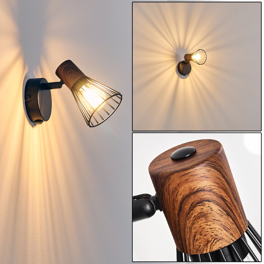 Industrieller Retro Wandleuchter aus Holz und Schwarz mit Käfigschirm für Wohnzimmer und Schlafzimmer