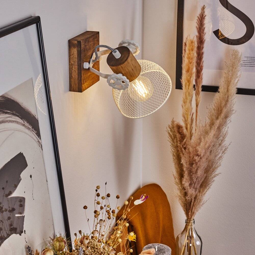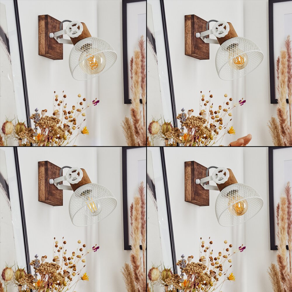 Industrielle rustikale Wandlampe aus Holz und Metallgitter mit verstellbarem Kopf für Wohnzimmer und Schlafzimmer