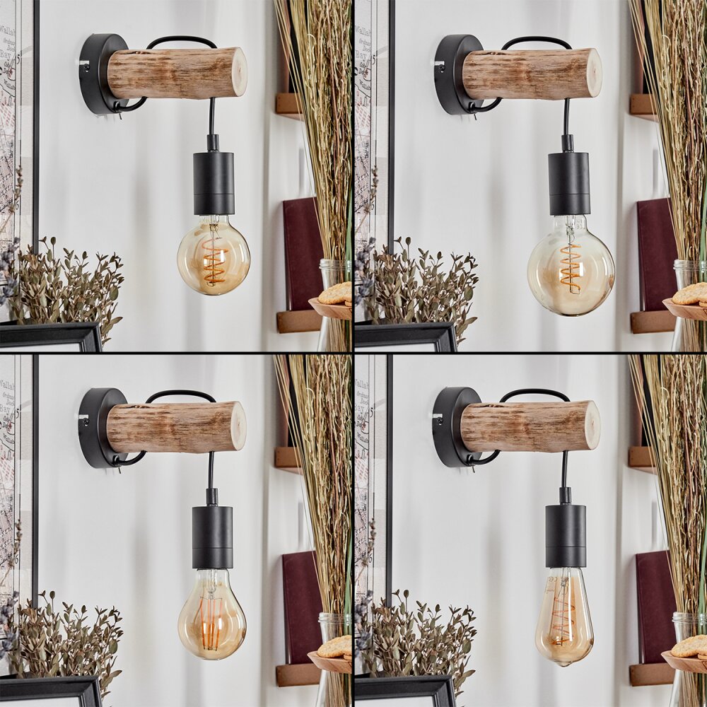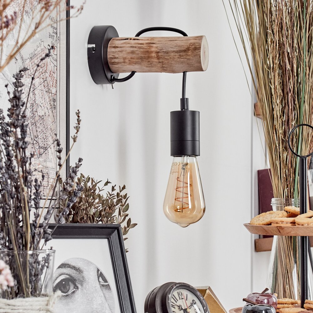 Rustikale Wandleuchte im nordischen Stil Yaak mit natürlichem Holz für Wohnzimmer und Schlafzimmer