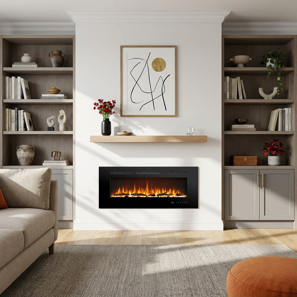 1270mm 50" EF50R Wandmontierter Elektrokamin Eingebauter Elektrokamin mit 13 Flammenfarben 750/1500W