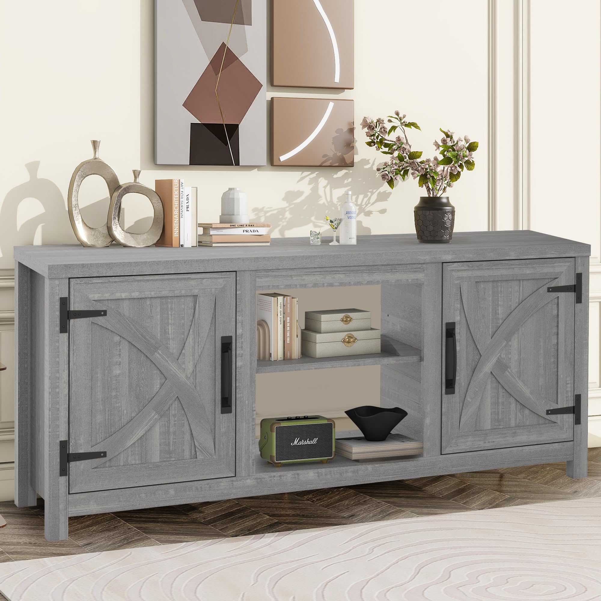 147cm Grey TV Stand with Closed Storage, Storage Cabinet with Adjustable Shelves, Fits Up to 65" TVs