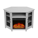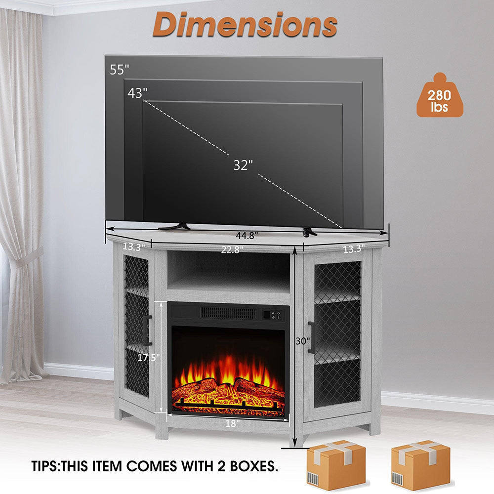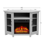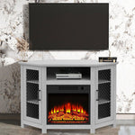 114cm Corner TV Stand with Electric Fire Console Table with 2 Metal Mesh Doors