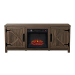147cm Brown TV Stand with Electric Fire, TV Stand with Barn Door, Storage Cabinet with Adjustable Shelves, Fits Up to 65" TVs