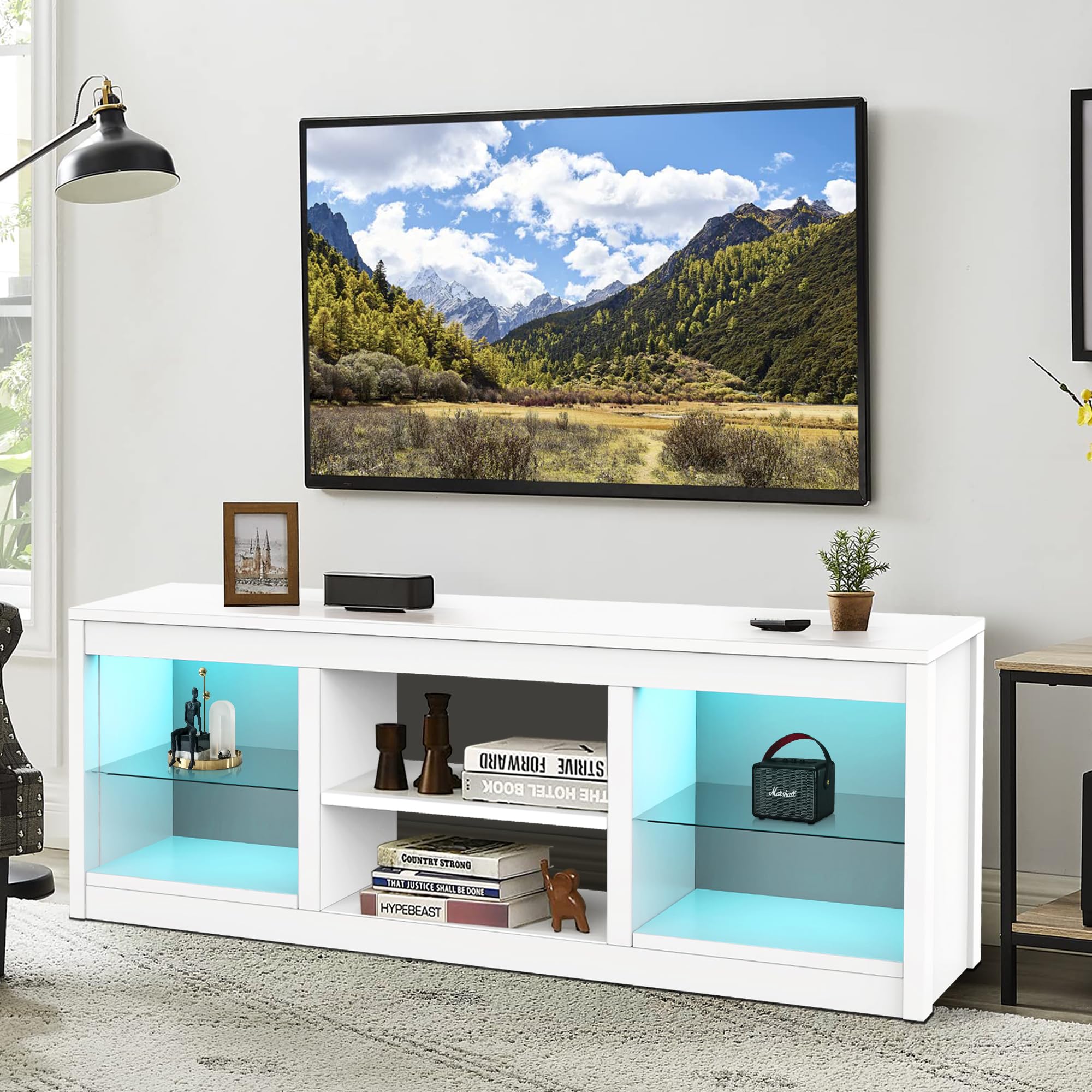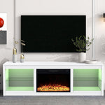 168cm White LED TV Stand with Electric Fire Fits Up to 75" TVs with LED Shelf Lighting
