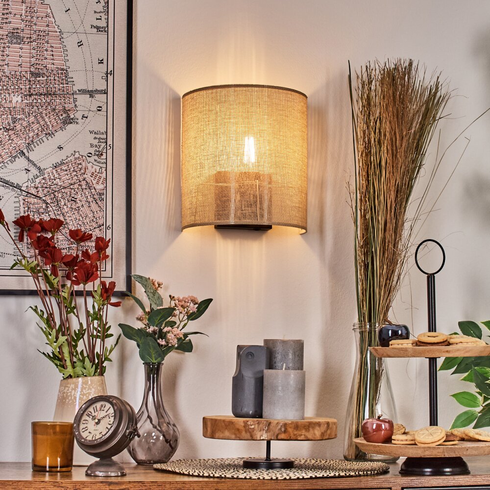 Boho Wandleuchte aus gewebtem Leinen-Mesh für Wohnzimmer und Schlafzimmer