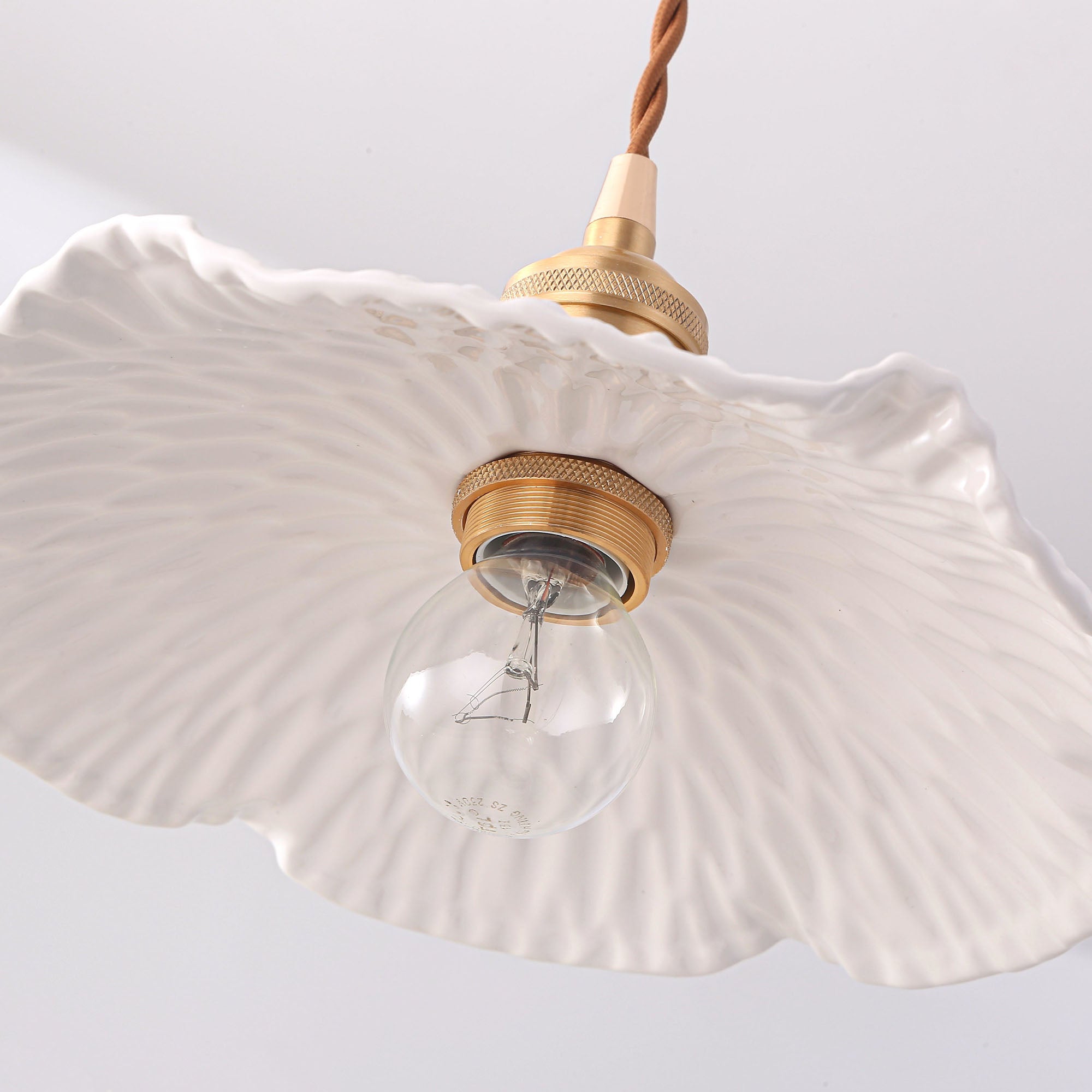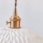 Die strukturierte Pendelleuchte Hope mit Keramikdetails ist die perfekte Dekoration für Ihr Wohn- oder Schlafzimmer. Sie erzeugt ein stimmungsvolles Licht im eingeschalteten Zustand und besticht auch im ausgeschalteten Zustand durch ihre skulpturale Schönheit.
