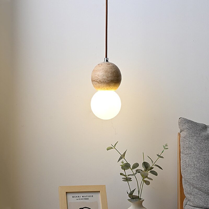Wabi Sabi Pendelleuchten aus Marmor-Travertin, Ø 10 cm, LED-Deckenleuchte aus Naturstein