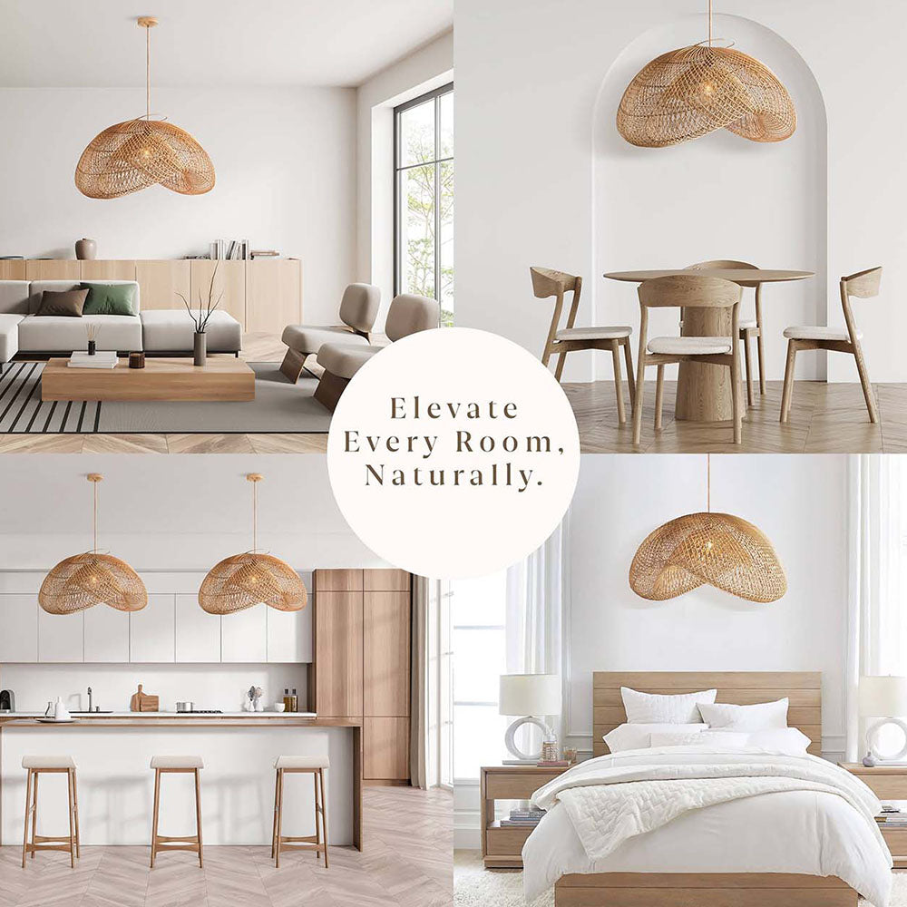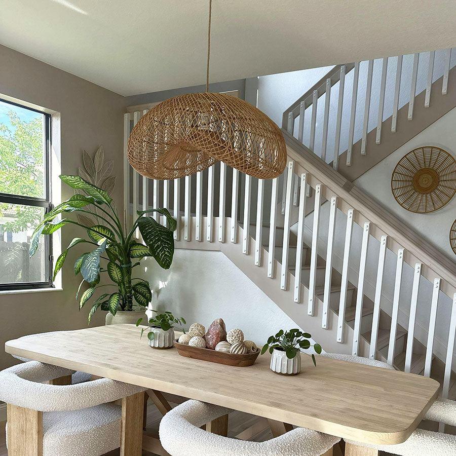 Unsere Pendelleuchten werden aus hochwertigem Rattan von erfahrenen Kunsthandwerkern handgeflochten, wodurch jede Leuchte ein Unikat ist. Das natürliche Material und die kunstvolle Flechttechnik schaffen eine warme und einladende Atmosphäre – perfekt für jeden Raum in Ihrem Zuhause. Ob modern und minimalistisch oder im Bohème-Stil und rustikal: Unsere Pendelleuchten verleihen jedem Raum Charme und Charakter.