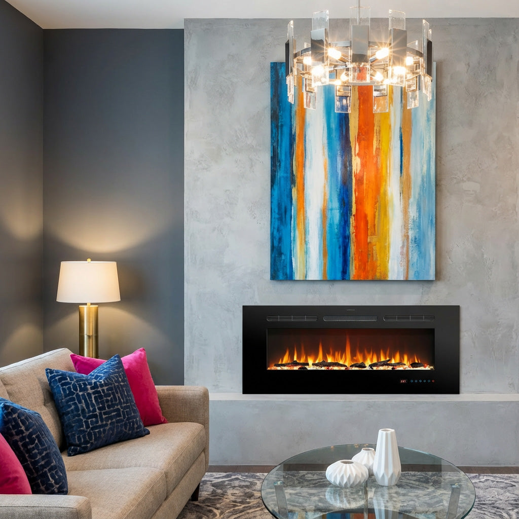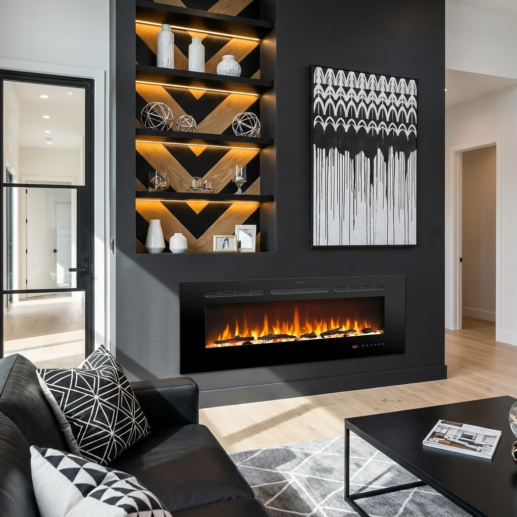 Cheminée électrique murale EF50R de 1270 mm 50" encastrée avec 13 couleurs de flamme 750/1500W