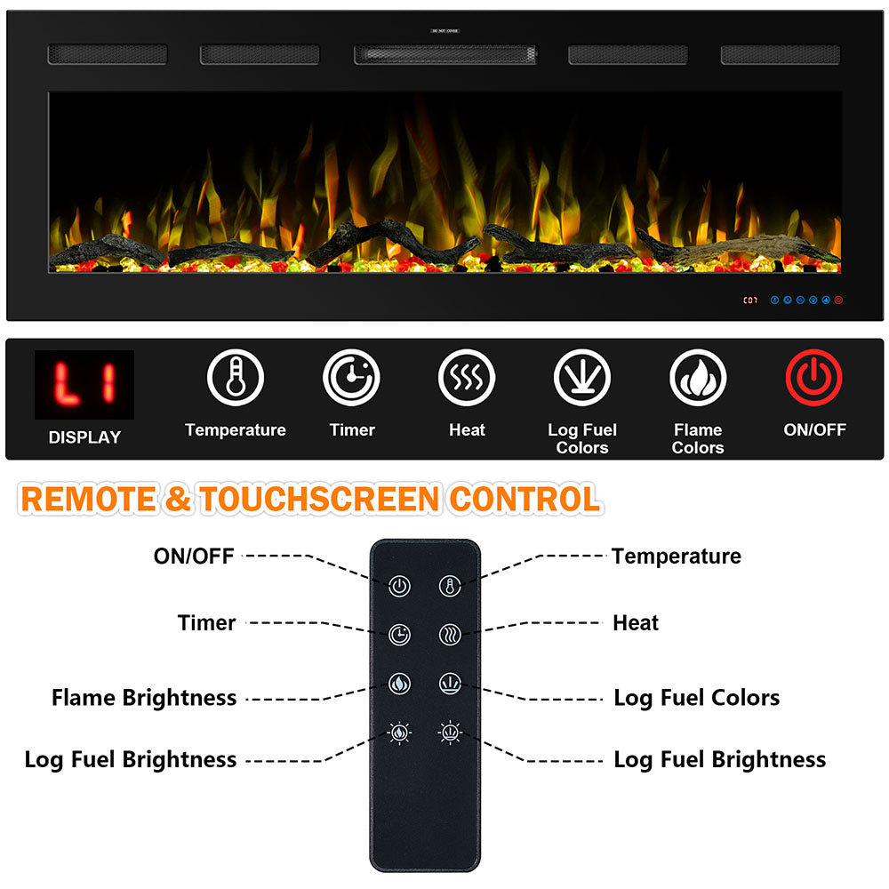 1524mm 60" EF60R Pro Hole in the Wall Electric Fire with 13 Flame Colors Insert Electric Fire with Remote Control 750/1500W