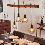 Industrial Geometric Wire and Rustic Wood Ceiling Light for Dining Room Living Room