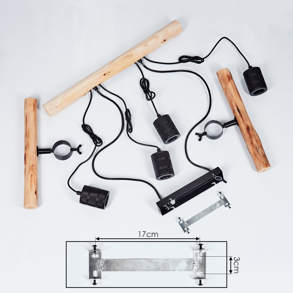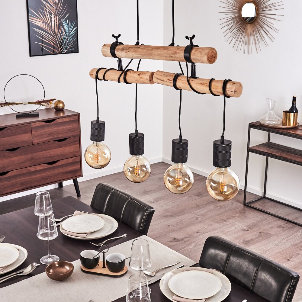 Inspired by rustic industrial aesthetics, this Ajaccio pendant light embraces the harmony of natural wood and bold black accents. Handcrafted with light wood and metal details, it showcases the art of fusion design, resulting in a captivating interplay of textures—from the warmth of wood to the sleekness of metal. The multi-light source layout adds a dynamic touch, making it an eye-catching centerpiece for dining spaces and cozy interiors.