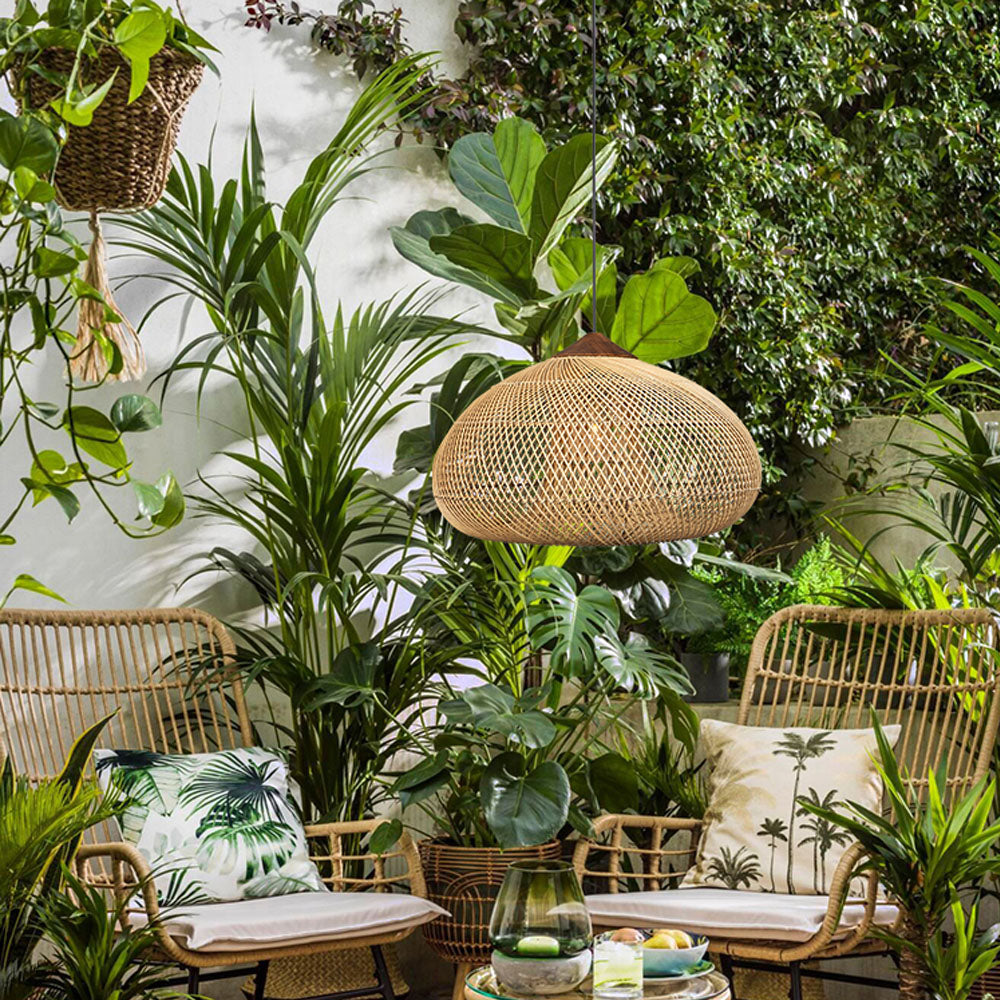 This round pendant light is made of natural rattan and wood, the rattan strips are crisscrossed. An additional layer of small round lampshade is added to the inner layer. The light is warm, mild and not dazzling. The quality makes the lamps have a faint fragrance, as if bringing nature into the home, making people feel relaxed and comfortable.